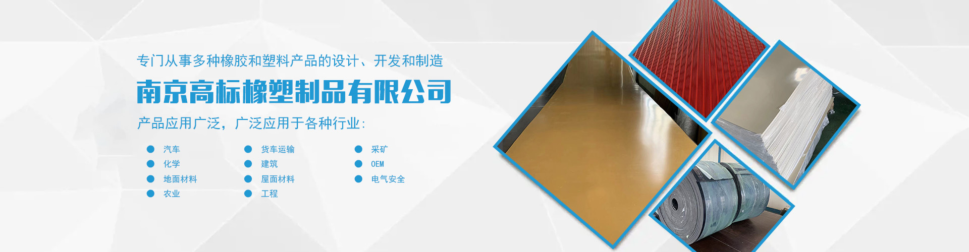 南京高標(biāo)橡塑制品有限公司是一家專業(yè)的橡膠板、橡膠制品和熱塑性塑料產(chǎn)品的制造商。主營(yíng)產(chǎn)品:三元乙丙橡膠板,丁腈橡膠版,氯丁橡膠板,丁苯橡膠板,丁基橡膠板,天然橡膠板,硅橡膠板,氟橡膠板,絕緣,防靜電,導(dǎo)電橡膠板,夾布,夾金屬網(wǎng)橡膠板,耐酸堿橡膠板,耐油橡膠板,耐磨橡膠板,阻燃橡膠板,阻尼橡膠板,減震橡膠板,防滑橡膠板,橡膠墊片等。 高標(biāo)橡塑專門(mén)從事多種橡膠和塑料產(chǎn)品的設(shè)計(jì)、開(kāi)發(fā)和制造。我們的產(chǎn)品應(yīng)用廣泛。廣泛應(yīng)用于各種行業(yè),包括:汽車(chē),貨車(chē)運(yùn)輸,采礦,化學(xué),建筑,OEM,地面材料,屋面材料,電氣安全,農(nóng)業(yè),工程等。 高標(biāo)橡塑的客戶服務(wù)于許多行業(yè),包括墊片切割、分銷商、工業(yè)用品零售商和批發(fā)商。自